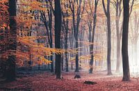 Mooi herfst licht op een mistige ochtend zorgt voor een kleurrijk kunstachtig tafereel in het Speulderbos.
