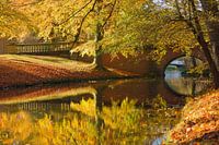 Foto van een brug en bomen in herfstkleuren op Landgoed Elswout in Overveen, Noord-Holland.
