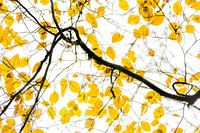 Prachtig gekleurde gele en oranje bladeren betekent dat de herfst volop bezig is. De beukenbomen verkleuren in de mooiste tinten. Deze foto is gemaakt onder de beuken van de Veluwezoom. De foto is van onder gericht naar de kronen van de bomen.