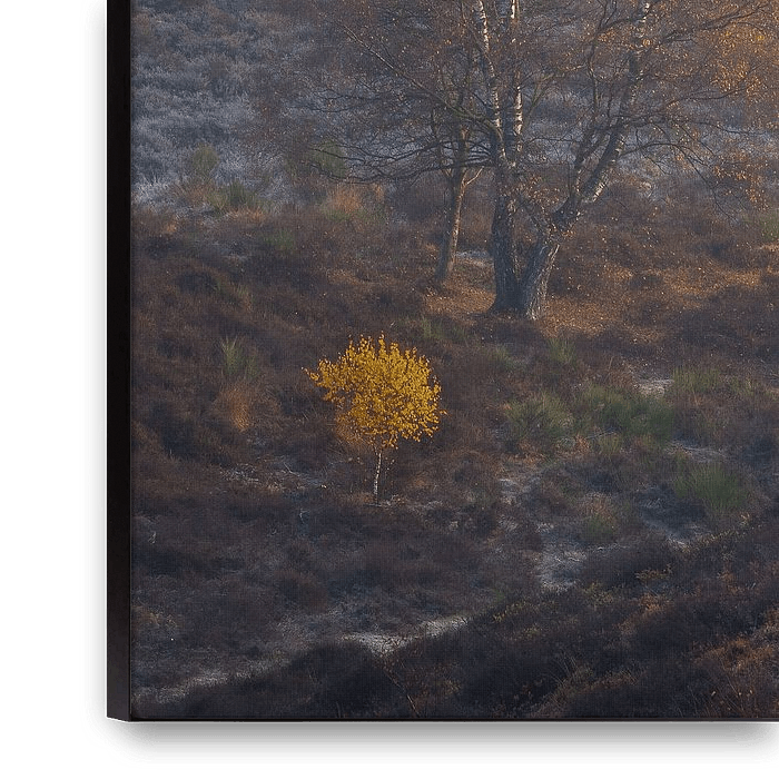 De droge zomer heeft een groot voordeel, de kleuren van de berkenbomen waren fantastisch. In de ochtendzon licht dit prachtig op. De Posbank is normaal gesproken bekend om de heuvels en de mist tijdens de bloeiperiode, maar ook andere jaargetijden zijn prachtig in dit gebied. Vooral als je gesloten landschappen gaat fotograferen.