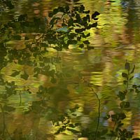 Weerspiegeling in het water van de herfst kleuren van de bomen. Door de beweging in het water ontstond er een schilderachtig tafereel en dat gewoon in een bosmeertje in de bossen bij Amersfoort.