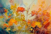 Schilderij van een bloemenveld in felle kleurenStudio Pieternel Modern Botanisch schilderij: Bloemen in de bermStudio Pieternel
