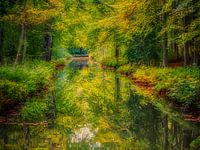 Prachtige herfstkleuren weerspiegeld in het gitzwarte water. Statige bomen en weelderige natuur met de herfstkleuren als held.