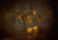 Herfst stilleven met herfsttakken en pioenen. brengt een warme , poëtische romantische sfeer in uw kamer en is makkelijk inpasbaar. Ook geschikt asl behang en poster.