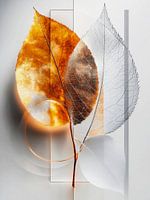"Autumn - Transience and Light" vertelt over de stille poëzie van verandering. Twee bladeren belichamen de dualiteit van het leven: het heldere herfstoranje staat voor vitaliteit, terwijl het transparante blad vergankelijkheid en zachte overgang symboliseert. Geometrische vormen en lijnen geven de voorstelling een moderne, hedendaagse esthetiek. Het werk combineert warmte en helderheid, emotie en structuur - ideaal voor iedereen die op zoek is naar een kunstwerk met diepte, elegantie en een meditatief effect in hun omgeving.