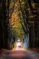 Herfstkleuren. een laantje richting Oudemirdum, Friesland. 2 mensen wandelen door deze prachtige zee van herfstkleuren