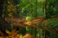 Aan alles op landgoed De Fraeylemaborg in Slochteren is te zien dat het herfst is. Een prachtig tafereel aan het einde van de dag waarbij de zon door de bomen schijnt.