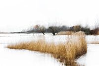 wateroverlast in de herfst gaf dit speciaal effect langs de oever van de Nete. Het contrast van de warme kleuren van het riet tegenover de koele kleur van het water