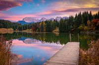 Zonsondergang bij het schilderachtige alpenmeer in Karwendel
