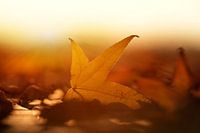 "Ontdek de betovering van de herfst met dit prachtige macro kunstwerk. Een enkel herfstblad, gevangen in de warme gloed van de avondzon, straalt in rijke gele en oranje tinten. Dit kunstwerk brengt de serene schoonheid van de natuur in je huis en creëert een sfeer van rust en warmte. Perfect voor elke ruimte die een vleugje natuurlijke elegantie verdient."