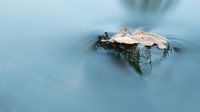 In een watervalletje ligt een steen, met een herfstblad er op. Long Exposure