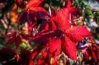 Digitaal bewerkte bladeren van een struik die rood kleuren in de herfst.