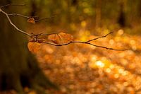 In de achtergrond zie je de stam van de boom en de glinsteringen van de herfstbladeren die al gevallen zijn.