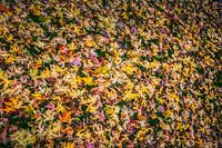 Gevalen blad in vele kleurschakeringen, een tijdelijk kunstwerkje van moeder natuur.