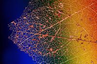 Vergaande herfstbladeren in een regenboog van kleuren. Labyrint van de bladskeletten, wat is natuur toch mooi ook als is die al vergaan.