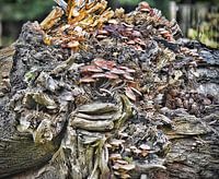 Omgevallen boom in de Haarlemmerhout met paddestoelen.