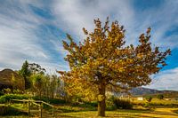 Herfstboom bij een wijgaard in Cederbergen, Zuid Afrika