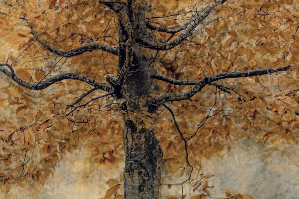 Een herfstboom in rustige tinten op Landgoed Nieuw Leeuwenhorst. Foto is gemaakt met meervoudige belichting en bewerkingen in PS.