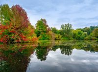 Koop de foto Herfstbos aan het water van Michel Knikker als print op canvas, aluminium dibond, (ingelijste) fotoprint, behang en ArtFrame. Voor jou op maat geprint in Fine-Art kwaliteit.