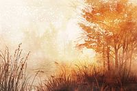 Laat dit prachtige ontwerp een sfeer van warmte en rust in uw ruimte brengen. De subtiele weergave van een herfstbos, badend in zachte sepia tinten, voegt een vleugje nostalgie en tijdloze elegantie toe. De zachte gloed van het ochtendlicht weerspiegelt door de bomen en de delicate lichtsprankels suggereren een serene dageraad. Ideaal voor de liefhebber van natuurlijke schoonheid en rustieke charme, dit stuk creëert een vredig toevluchtsoord in elke kamer. Voeg het toe aan uw collectie om een touch van de betoverende herfst te vangen en te genieten van de kalmerende invloed die het brengt.