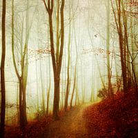 Pad door een bos in de ochtendnevel - fotografie bewerkt met texturen