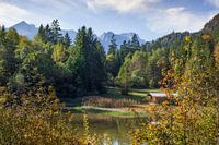 Herfstbos met Wetterstein en Schmölzer See van Torsten Krüger