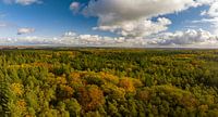 Herfstbos met kleurrijke bladeren van bovenaf gezien tijdens een mooie herfstdag. De bladeren aan de bomen veranderen van kleur in dit bos in Gelderland, Nederland.