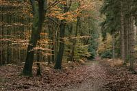 Herfstbos met zandpad