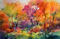 Herfstbos in aquarel