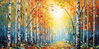 Een kleurrijk herfstbos in de stijl van een schilderij.