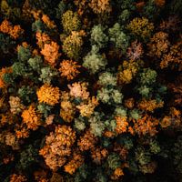 Een kleurrijk bladertapijt ontvouwt zich onder de wijde hemel. De bomen dragen een levendige herfstjurk in felle oranje en weelderig groene tinten. Elke boom vertelt zijn eigen verhaal, terwijl de wind zachtjes door de takken fluistert. Dit verheven perspectief transformeert het landschap in een harmonieus natuurlijk schilderij dat…