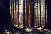 Herfstimpressie in het donkere naaldbos