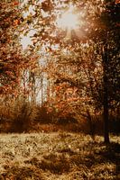 Deze foto is gemaakt in Nederland in de herfst met prachtige gekleurde bomen en een mooi herfstig ondergaande zon.