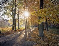 zon, herfst, bomen, bos, bospad, laantje, bladeren, schaduw,