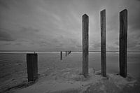 Donkere luchten, een ruwe zee, strandpalen en aangespoeld touw zijn de ingrediënten voor deze mooie zwart-wit foto van het Noordzeestrand bij Noordwijkerhout.