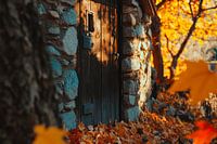 Een charmante stenen deur verbergt zich te midden van gloeiende gouden herfstbladeren en fluistert verhalen van vervlogen tijden. Het contrast van warme aardetinten en levendige kleuren straalt gezelligheid uit en nodigt uit tot dromen. Perfect voor de woonkamer om een uitnodigende, natuurlijke sfeer te creëren en het oog voor detail…