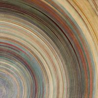 Dit dynamische werk toont een kwart schijf van smalle, onregelmatige, concentrische kleurringen in lichte en donkere aardetinten. Met zijn herfstige, harmonieuze kleurenpalet zou het goed passen in een rustieke omgeving.