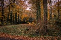 Klein smal weggetje omgeven door prachtige herfstkleuren.