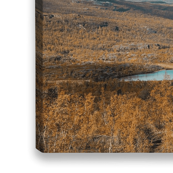 Deze foto nam ik onderweg van Finland naar Noorwegen, helemaal in het noorden. In de verte zie je de (besneeuwde) bomen, terwijl de herfst duidelijk overheerst.