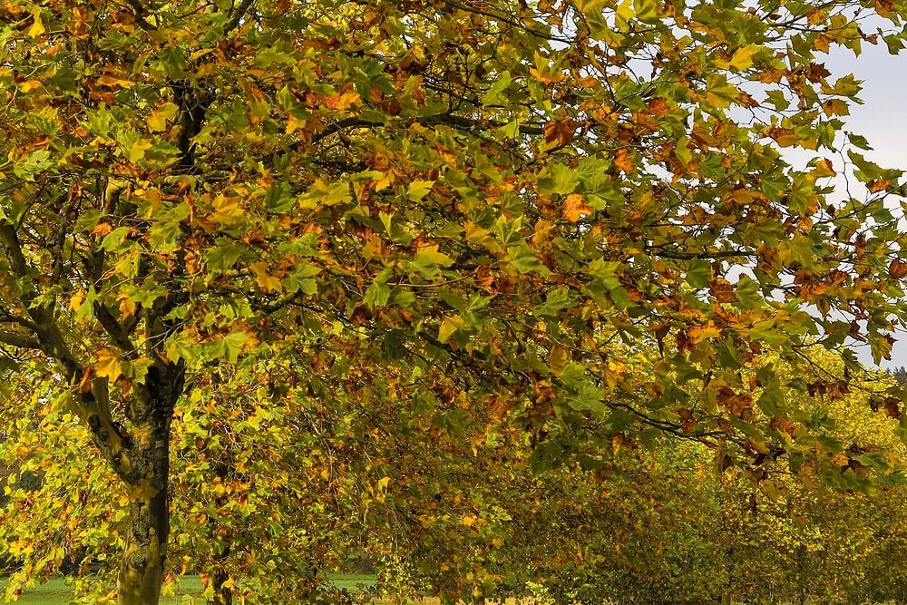 Herfstkleurige esdoorns langs een veldweg bij Eigeltingen-Homberg