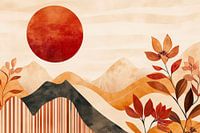 Een harmonieus samenspel van warme aardetinten en zachte lijnen roept de zachte schoonheid van een herfstlandschap op. De helderrode zonsondergang achter de lieflijke bergen nodigt uit tot dromen. Deze compositie brengt een gezellige sfeer in elke woonkamer en zorgt voor uitnodigende momenten van samenzijn.