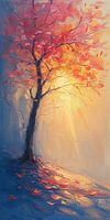Hier, waar de aarde zachtjes het vallende blad omarmt, lijkt de boom te rouwen om de komst van de herfst, een seizoen van schoonheid en afscheid dat herinnert aan Demeter's liefde voor haar dochter Persephone. De gouden gloed is een belofte van wedergeboorte en oneindige cycli.