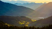 Uitzicht over Wildschönau naar de Kitzbüheler Alpen op een ochtend in de herfst