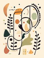 Abstracte weergave van een ochtend aan het begin van de herfst, waarin ik verschillende organische elementen en texturen gecombineerd heb met geometrische vormen. De compositie is geïnspireerd op het Zuiderpark in Rotterdam.