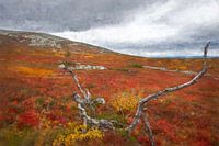In het najaar kleuren deze planten fel rood en geel. Dat gecombineerd met een sombere grijze lucht krijg je mooie contrasten.