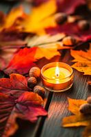 Koop dit schilderij Herfstsfeer met een kaars van Poster Art Shop als reproductie op canvas, aluminium dibond, (ingelijste) fotoprint, behang en ArtFrame, op maat geprint in Fine-Art kwaliteit.