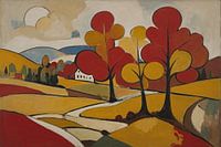 Herfsttafereel met Rode en Gouden Bladeren van Art & Soul Creations