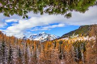 Herfstvenster op de Tauernpas met uitzicht op de Steinfeldspitze