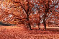 Knoestige oude eikenhouten kwartet in een heldere herfstjurk.
