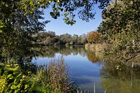 Het pittoreske park Brusselse Forten in Dendermonde, Oost-Vlaanderen, België, biedt een prachtig uitzicht op het meer. Het levendige herfstgebladerte wordt weerspiegeld op het kalme, glazige wateroppervlak en creëert een caleidoscoop van kleuren. De rustige sfeer wordt versterkt door de omringende bomen, waardoor een sereen en idyllisch uitzicht ontstaat, dicht bij het centrum van deze Vlaamse stad.